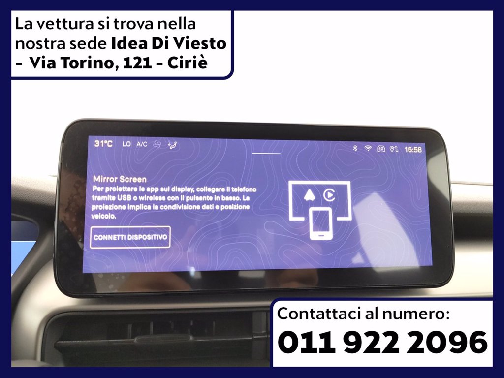 N.B.: Le dotazioni tecniche, le informazioni relative all'ubicazione e gli accessori indicati nella presente scheda sono accurate, tuttavia potrebbero contenere errori o imprecisioni. Sono quindi da considerarsi puramente indicativi e potrebbero non coincidere con l'effettiva dotazione tecnica, accessori e informazioni relative all'ubicazione dello specifico veicolo. Il cliente è pertanto invitato a verificarne l'effettiva corrispondenza contattando la Concessionaria. L'azienda declina ogni responsabilità per eventuali involontarie incongruenze tra le effettive caratteristiche dello specifico veicolo ed i dati presenti sulla scheda informativa, che non rappresentano in alcun modo un impegno contrattuale per il venditore, ma soltanto informativo. In nessun caso i prezzi pubblicati rappresentano un impegno contrattuale. Tutte le condizioni contrattuali ed economiche si reperiscono esclusivamente presso le sedi delle Concessionarie Di Viesto presenti sul territorio.