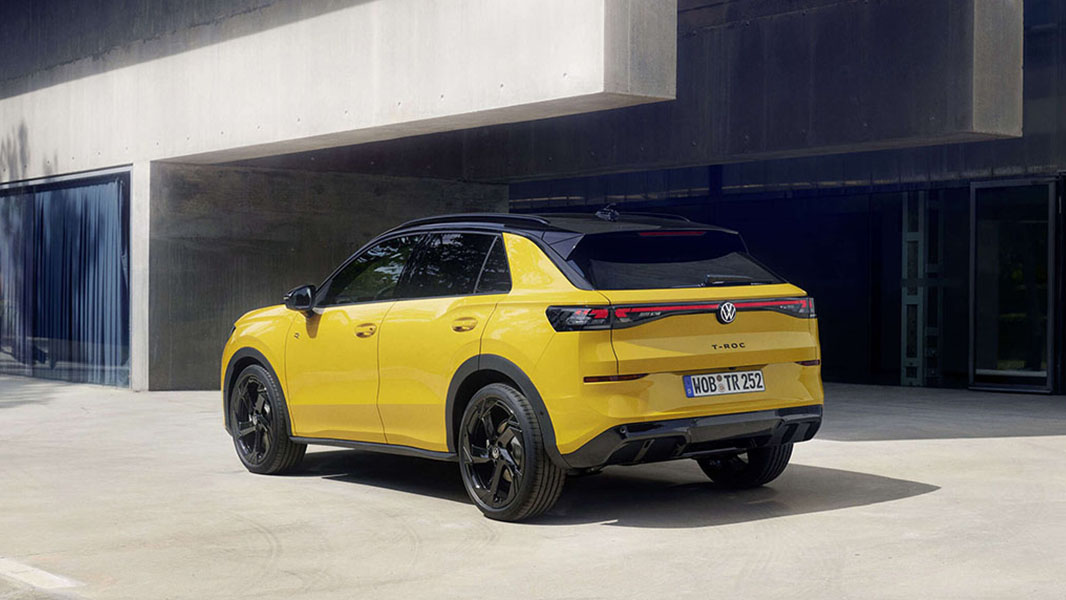 Nuovo T‑Roc esprime ancora più carattere: è lungo 12 cm in più rispetto alla generazione precedente, con frontale slanciato, paraurti marcati e linee decise. La sua iconica silhouette è valorizzata da cerchi in lega fino a 20”.